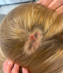 - Tinea capitis is a highly contagious fungal scalp infection.7 In the United States, it is caused most commonly by Trichophyton tonsurans. It varies in presentation from scaly dermatosis (see Figure 4) to inflammatory lesions known as kerion.8 Diagnosis involves clinical examination, KOH analysis, and fungal culture. Prompt treatment, combining oral antifungals with topical agents and selenium sulfide shampoo, is crucial to prevent scarring and hair loss. In severe cases, oral corticosteroids may be added to reduce inflammation.