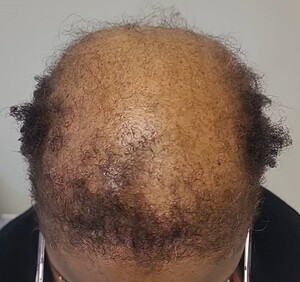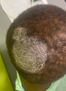 - Central centrifugal cicatricial alopecia (CCCA) is a scarring alopecia predominantly affecting women of African descent, marked by permanent hair loss on the scalp’s vertex or crown with centrifugal spread, as in Figure 3.5 While once attributed solely to hairstyling practice, recent research reveals contributors including genetic variants and systemic conditions. Initial managements target eradicating damaging practices, while steroids and antibiotics combat inflammation and potential infection. Minoxidil may stimulate hair growth in unaffected areas. Emerging treatments include metformin and PRP. Hair transplantation is considered for stable cases, and camouflage techniques like wigs aid advanced stages. Understanding CCCA’s complexity informs comprehensive management approaches.6