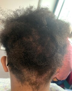 - Traction alopecia is a preventable form of hair loss caused by repetitive or prolonged tension on the hair, often from tight hairstyles like braids, ponytails, and cornrows.11 It is associated with professions like ballet and gymnastics due to the expected hairstyles, and it also most commonly affects women of African descent.12 Early signs include thinning at the frontal hairline (see Figure 6), progressing to “fringe sign” where fine hairs remain along the edges of the original hairline and eventually scarring and irreversible hair loss. Treatment involves discontinuing tight styles promptly, using topical corticosteroids, and potentially incorporating minoxidil or biotin supplements.