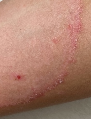 In this case, the diagnosis was straightforward: a slowly expanding erythematous scaled patch with central clearing. “Shotgun treatment” with combination topical steroids and topical antifungals is often ineffective. Lowering local immunity with topical steroids can lead to treatment failure and fungal resistance even when using concomitant topical anti-fungals.4 Furthermore, topical steroid use can produce “tinea incognito” where decreased scaling and erythema obscure the classic clinical features leading to misdiagnosis or delayed diagnosis.