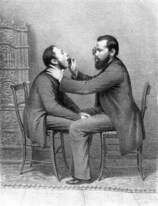 The head mirror is the venerable symbol of the ENT doctor. A light source is placed by the patient’s shoulder and light deflected from the light source off the head mirror and into the patient’s mouth, nose, or whatever site is being examined.4